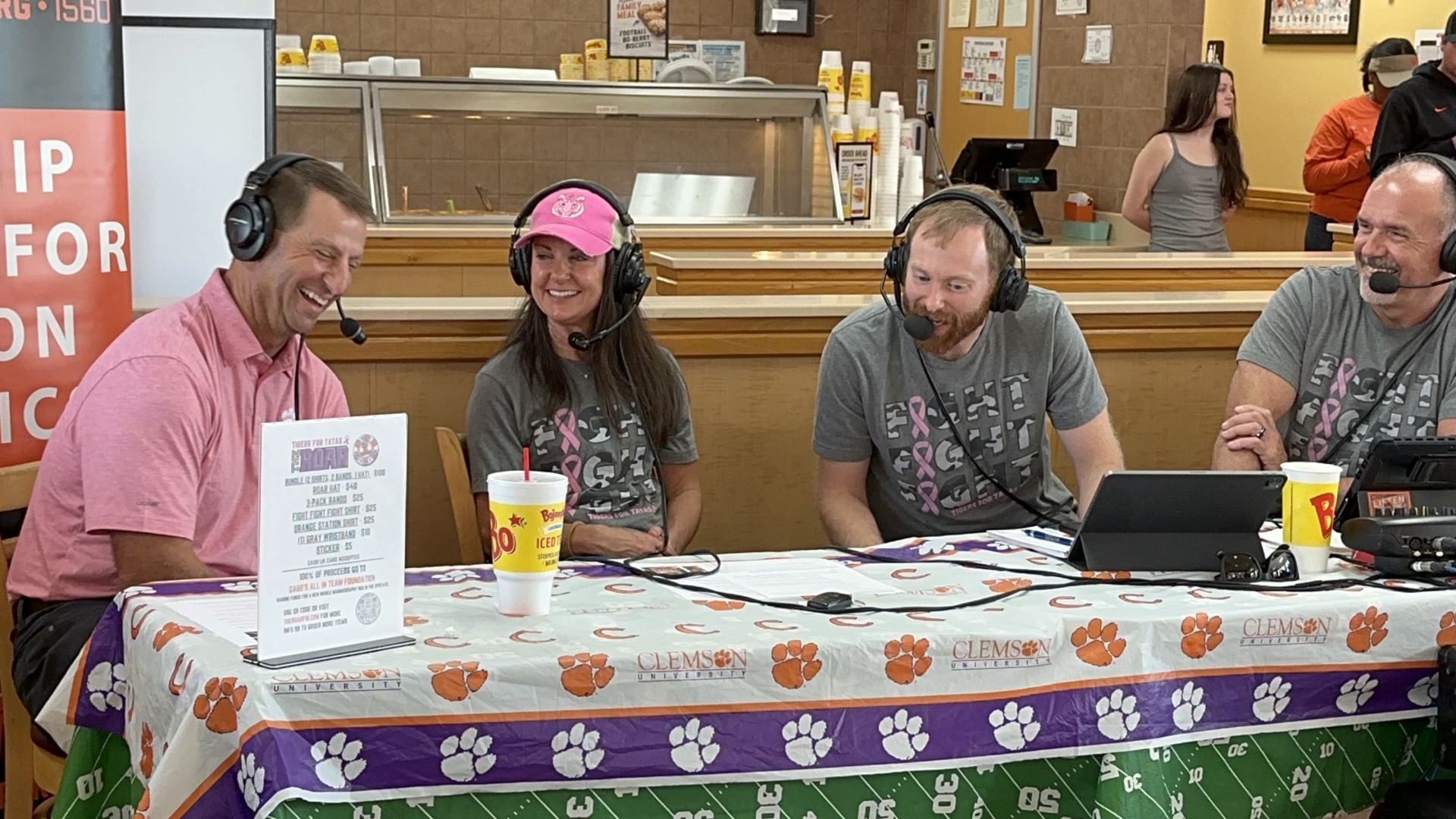 Coach Swinney and Kathleen share their passion for serving the Upstate through Dabo's All In Team Foundation (0:00-14:46) and Dabo describes his feelings on the Tigers' season and his current mentality (14:47-38:00). Thanks to our friends at Bojangles for hosting us! Listen to the full interview below.